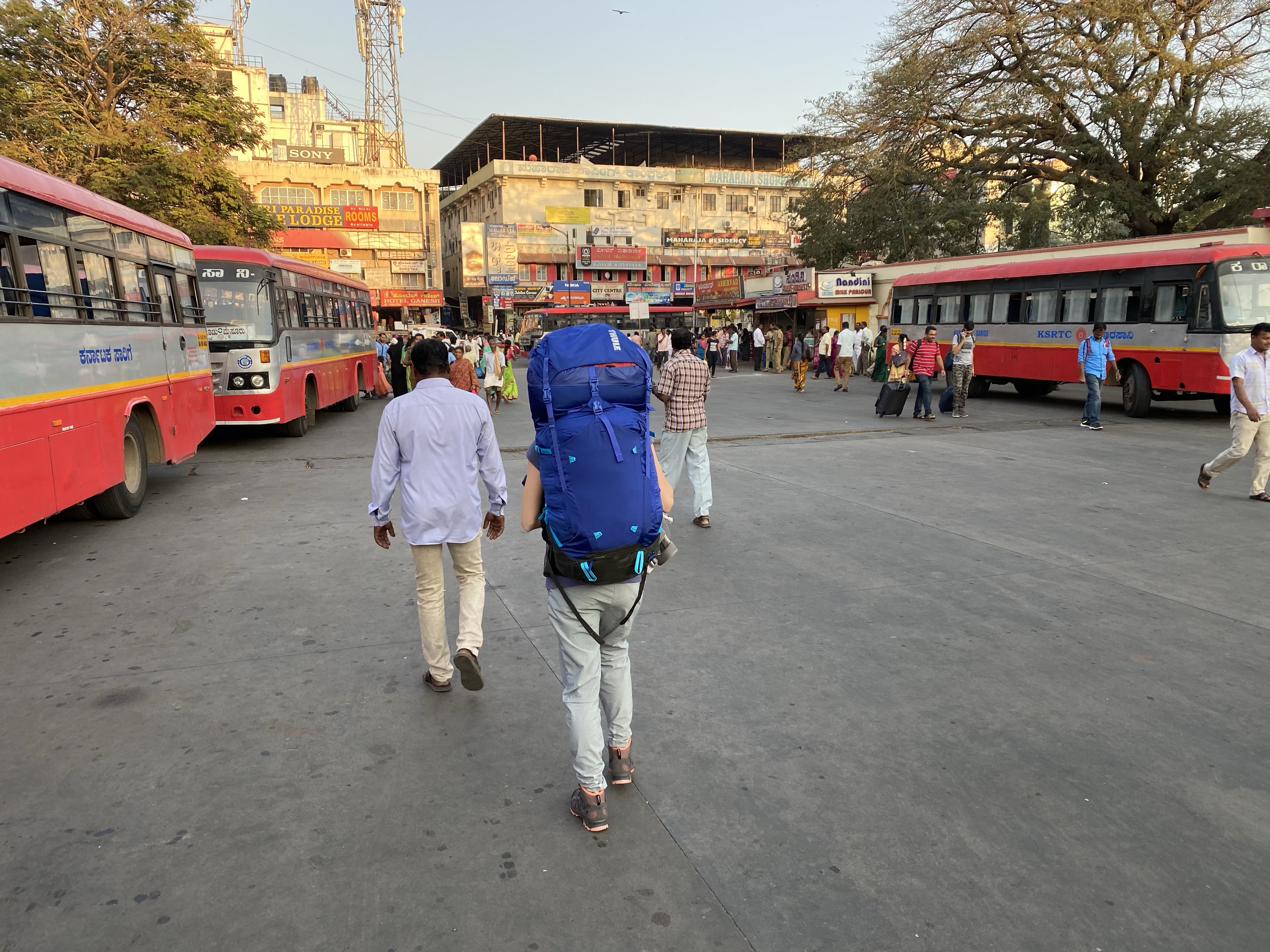 Wir sind heute Abend in Mysore angekommen. Die Fahrt hierher war sehr aufregend. Aber erstmal von vorne: im Flugzeug nach Bangalore gab es sogar ein warmes Essen, was gut war. Mit dem Visum hat alles geklappt. Dann sind wir zu einem Schalter gegangen, wo es SIM Karten gibt. Diese sollte am nächsten Morgen aktiviert werden. Als wir das Flughafengebäude in Bangalore verlassen haben, hat es “super lecker” gerochen. Nach indischem Essen! Naja und dann sind wir mit dem Shuttle ins Hotel gefahren und haben noch eine Kleinigkeit gegessen bevor wir ins Bett gehen wollten. Als Henrik seinen Rucksack ausgepackt hat, ist ihm aufgefallen, dass eine Flasche Bier kaputtgegangen ist. Ich war nur froh, dass ich nicht in seinem Rucksack inmitten der Scherben und dem Bier lag. Zumindest haben Henrik und Sarah dann noch ein paar Sachen durchgewaschen, die voller Bier waren. In der Zeit habe ich mich schon mal hingelegt, weil ich super müde war. Wir haben dann alle drei sehr gut geschlafen. Heute früh das Frühstück war dann ganz gut. Es gab indische Küche, wir haben ein Omelett frisch gemacht bekommen und Toast. Der gleiche Taxifahrer vom Abend zuvor hat uns wieder zum Flughafen gefahren. Wir sind erstmal zu dem Schalter gegangen, bei dem wir am Abend zuvor die SIM Karte gekauft haben, weil diese noch nicht aktiviert war. Dort wurde uns erklärt, dass die Aktivierung nicht funktioniert hat und wir haben das Geld zurückbekommen. Weiter ging es dann zum Busterminal, der direkt am Flughafen war. Der Bus war recht gemütlich. Die Fahrt hat auch immerhin 4 Stunden gedauert. Bei einer kurzen Pause haben sich Sarah & Henrik eine Kokosnuss gegönnt. Der Verkehr hier ist sehr chaotisch. Der Busfahrer hat ständig gehupt und ist dicht aufgefahren. So fahren aber alle hier. Nachdem wir dann endlich das Haus von einem Freund eines Freundes von uns gefunden haben, wurden wir herzlich empfangen, waren einkaufen, lecker essen und liegen nun im Bett. Es scheint so, als wären hier nicht so häufig Europäer, da uns einige Leute nachsehen und fragen woher wir kommen. Morgen sind wir für eine Nacht im Hotel, welches unser Freund für uns gebucht hat und dann nochmal 3 Nächte hier, bevor es Montag für 4 Tage in eine Jungle lodge geht. Wir sind gespannt auf die nächsten Tage. Gute Nacht!!